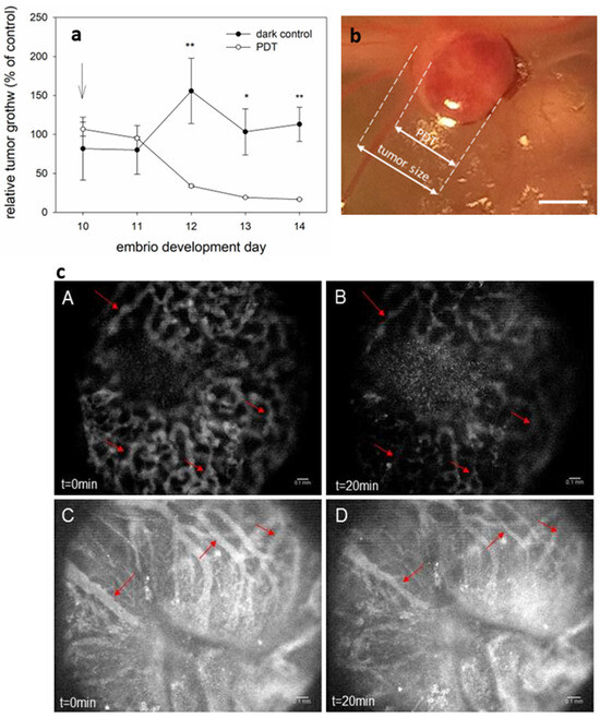 - Nowak-Sliwinska, P.; van Beijnum, J.R.; van Berkel, M.; van den Bergh, H.; Griffioen, A.W. Vascular Regrowth Following Photodynamic Therapy in the Chicken Embryo Chorioallantoic Membrane. Angiogenesis 2010, 13, 281–292. [Google Scholar] [CrossRef] [PubMed][Green Version]