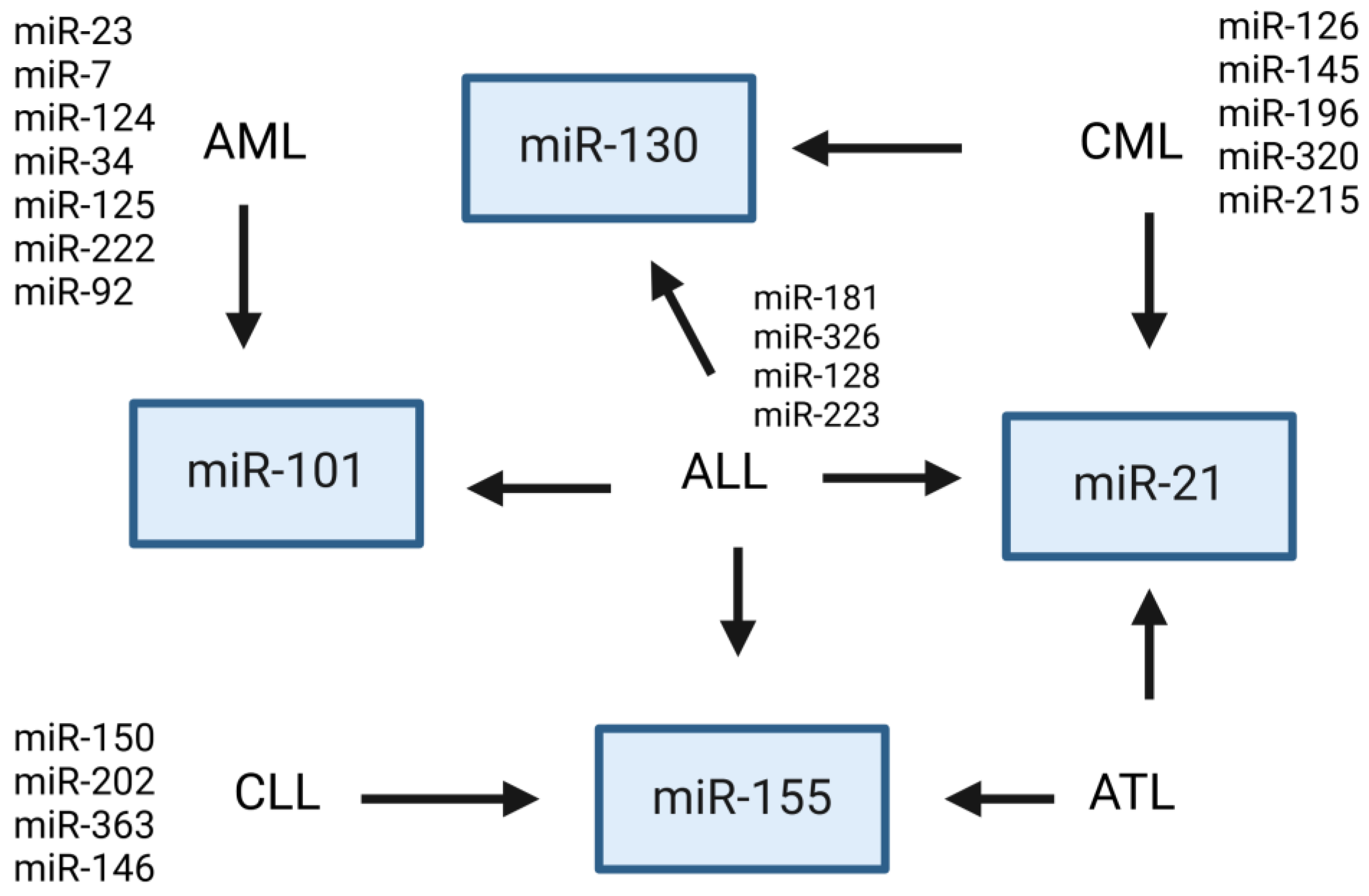 - Lv, M.; Zhu, S.; Peng, H.; Cheng, Z.; Zhang, G.; Wang, Z. B-cell acute lymphoblastic leukemia-related microRNAs: Uncovering their diverse and special roles. Am. J. Cancer Res. 2021, 11, 1104–1120. [Google Scholar]