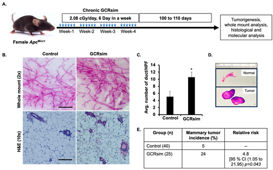 3.1. Increased Ductal Overgrowth and Mammary Tumorigenesis After GCRsim