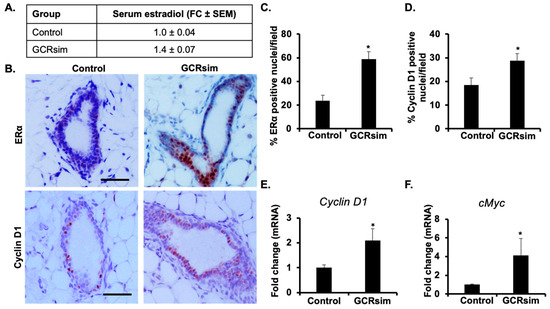 3.2. GCRsim-Exposure Induces Activation of ERα and Downstream Target Genes