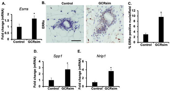 3.3. GCRsim-Exposure Induces Activation of ERRα and Downstream Target Genes