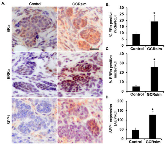 Simulated Galactic Cosmic Radiation Exposure-Induced Mammary Tumorigenesis in ApcMin/+ Mice Coincides with Activation of ERα-ERRα-SPP1 Signaling Axis