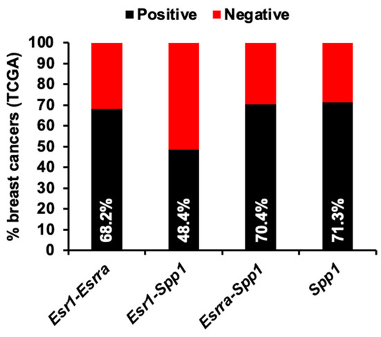 2.8. Co-Expression Analysis of Esr1, Esrra, and Spp1 Genes in Human Breast Cancer