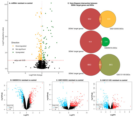 3.3. miRNA Target Prediction and Overlap with DEGs