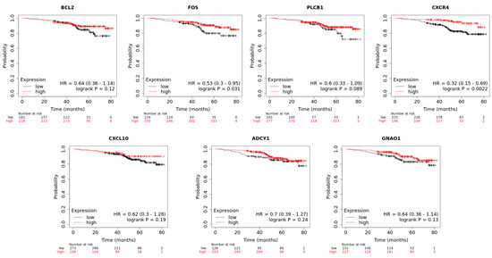 - Lánczky, A.; Győrffy, B. Web-Based Survival Analysis Tool Tailored for Medical Research (KMplot): Development and Implementation. J. Med. Internet Res. 2021, 23, e27633. [Google Scholar] [CrossRef]