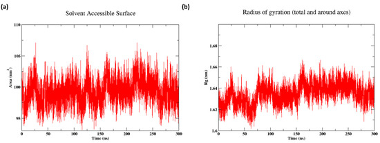 (a) Solvent-accessible surface (SASA). (b) Radius of gyration (Rg).