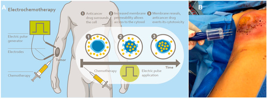 - Matthiessen, L.W.; Keshtgar, M.; Curatolo, P.; Kunte, C.; Grischke, E.M.; Odili, J.; Muir, T.; Mowatt, D.; Clover, J.P.; Gehl, J.; et al. Electrochemotherapy for Breast Cancer-Results From the INSPECT Database. Clin. Breast Cancer 2018, 18, e909–e917. [Google Scholar] [CrossRef] [PubMed]