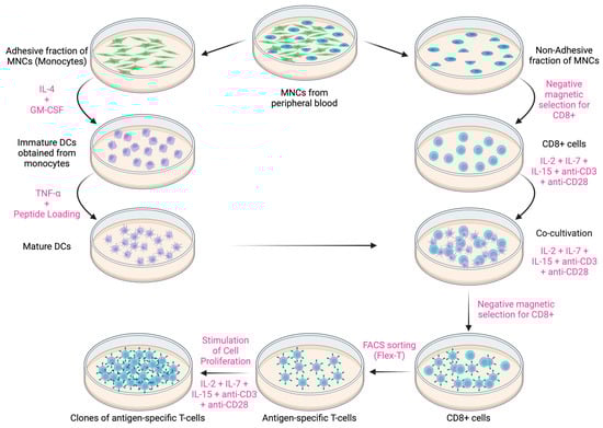 To induce preparative amounts of antigen-specific cytotoxic T lymphocytes in vitro, DCs were utilized, as they have a unique ability to capture antigens, followed by their processing and presentation in combination with MHC class I and class II molecules for the activation of naive T cells, leading to their clonal expansion and differentiation into effector cells [