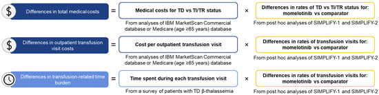Masarova, L.; Liu, T.; Fillbrunn, M.; Li, W.; Sajeev, G.; Rao, S.; Gorsh, B.; Signorovitch, J. Transfusion-Related Cost and Time Burden Offsets in Patients with Myelofibrosis Treated with Momelotinib in the SIMPLIFY-1 and SIMPLIFY-2 Trials. Cancers 2024, 16, 4067. https://doi.org/10.3390/cancers16234067
