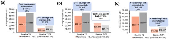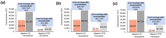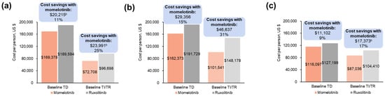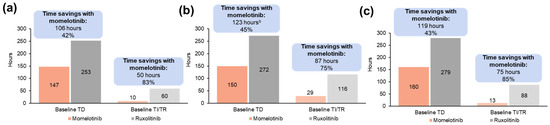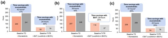 - Masarova, L.; Verstovsek, S.; Liu, T.; Rao, S.; Sajeev, G.; Fillbrunn, M.; Simpson, R.; Li, W.; Yang, J.; Le Lorier, Y.; et al. Transfusion-related cost offsets and time burden in patients with myelofibrosis on momelotinib vs. danazol from MOMENTUM. Futur. Oncol. 2024, 20, 2259–2270. [Google Scholar] [CrossRef]