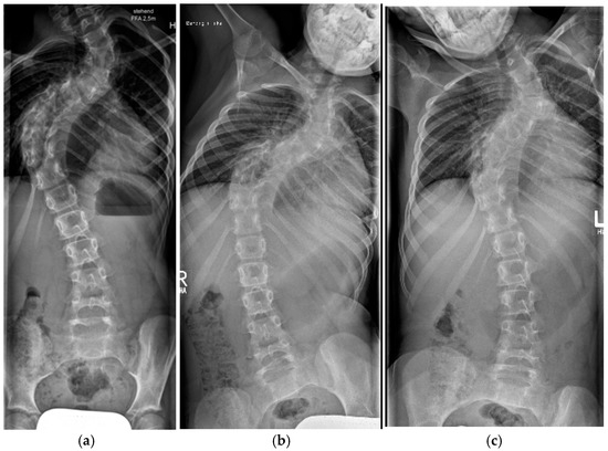 - Campbell, R.M., Jr.; Smith, M.D.; Mayes, T.C.; Mangos, J.A.; Willey-Courand, D.B.; Kose, N.; Pinero, R.F.; Alder, M.E.; Duong, H.L.; Surber, J.L. The characteristics of thoracic insufficiency syndrome associated with fused ribs and congenital scoliosis. J. Bone Jt. Surg. Am. 2003, 85, 399–408. [Google Scholar] [PubMed]