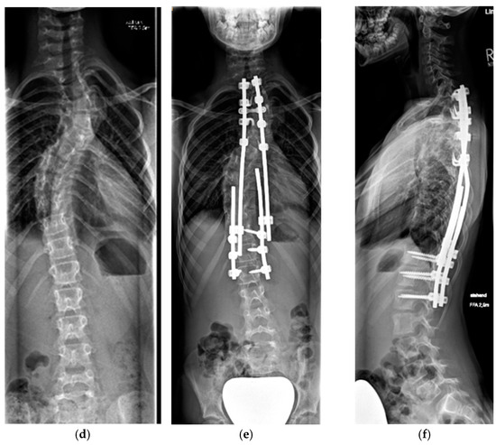 - Tauchi, R.; Kawakami, N.; Castro, M.A.; Ohara, T.; Saito, T.; Morishita, K.; Yamauchi, I. Long term surgical outcomes after early definitive spinal fusion for early onset scoliosis with NF Type-1 at mean follow-up of 14 years. J. Pediatr. Orthop. 2020, 40, 42–47. [Google Scholar] [CrossRef]