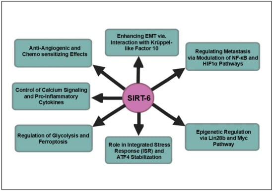 - Li, Y.; Jin, J.; Wang, Y. SIRT6 Widely Regulates Aging, Immunity, and Cancer. Front. Oncol. 2022, 12, 861334. [Google Scholar] [CrossRef]