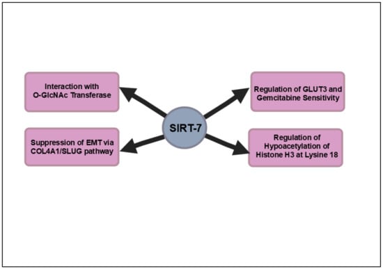 - Ianni, A.; Kumari, P.; Tarighi, S.; Braun, T.; Vaquero, A. SIRT7: A novel molecular target for personalized cancer treatment? Oncogene 2024, 43, 993–1006. [Google Scholar] [CrossRef]