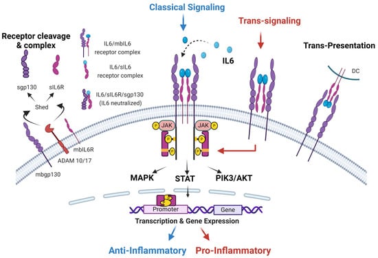 - Wolf, J.; Rose-John, S.; Garbers, C. Interleukin-6 and its receptors: A highly regulated and dynamic system. Cytokine 2014, 70, 11–20. [Google Scholar] [CrossRef]