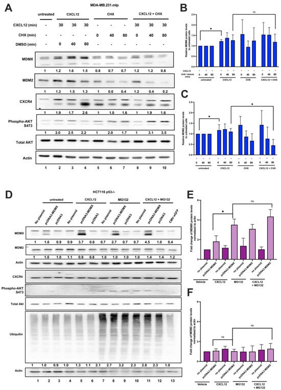 3.1. Exogenous Addition of CXCL12 to MDA-MB-231 Cells Activates PI3K/AKT Signaling and Upregulates MDMX or MDM2 Protein Levels