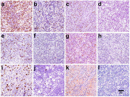 - Alvaro, T.; Lejeune, M.; Salvado, M.T.; Bosch, R.; García, J.F.; Jaén, J.; Banham, A.H.; Roncador, G.; Montalbán, C.; Piris, M.A. Outcome in Hodgkin’s lymphoma can be predicted from the presence of accompanying cytotoxic and regulatory T cells. Clin. Cancer Res. 2005, 11, 1467–1473. [Google Scholar] [CrossRef]