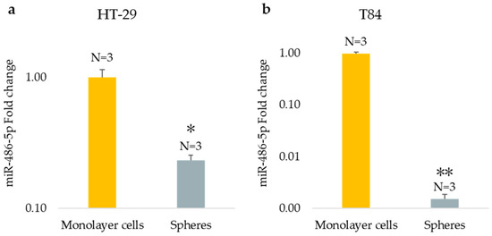 3.3. miR-486-5p Is Downregulated in Colonospheres Culture Model