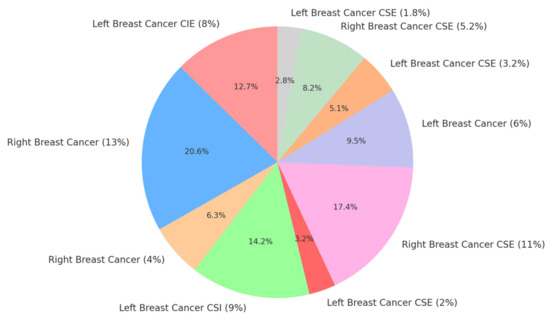 Distribution of breast cancer cases by side and classification, where CSE = Clinical Staging Examination, CSI = Cancer Staging Investigation, and CIE = Clinical Imaging Evaluation.