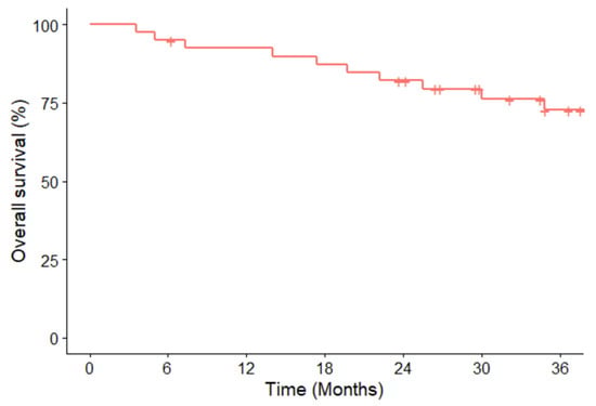 Kaplan–Meier curves of the overall survival of 40 ROS1-rearranged NSCLC patients treated with crizotinib.