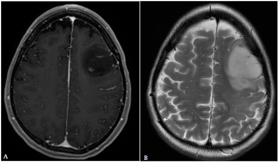 Malignant brain tumors can be categorized into two broad groups: metastatic tumors, which arise from locations outside the brain, and primary tumors, which originate within the brain tissue itself and its surrounding meninges. Metastatic brain tumors most commonly originate from the lungs, breasts, and skin, particularly melanoma [2]. Over 100 distinct primary CNS tumor cell types contribute to different histopathologies, with each demonstrating a unique set of clinical presentations, treatment options, and potential outcomes. In addition to histology and immunohistochemistry, substantial advancement in molecular diagnostics has allowed for histogenetic classification of various types and subtypes of these tumors, as described in the recent fifth edition of the WHO classification of brain tumors. In a study spanning 2016–2020, the average age-adjusted incidence of all malignant and non-malignant CNS tumors was 24.83 per 100,000 people. In that study, roughly 27.9% of all CNS tumors were found to be malignant and 72.1% were categorized as non-malignant or benign. Gliomas constituted 26.3% of all tumors. Among the primary malignant tumor histopathologies, glioblastoma (GBM) was the most frequently occurring, constituting 14.2% of all tumors and 50.9% of all malignant tumors. Conversely, meningioma (Figure 1) was the most common non-malignant tumor, accounting for 40.8% of all tumors and 56.2% of all non-malignant tumors [3].
