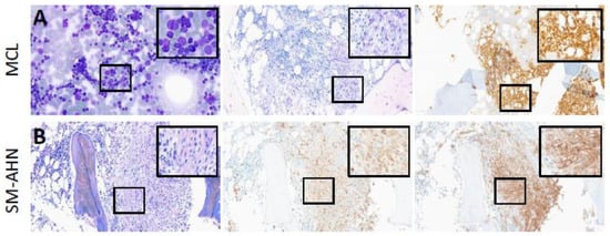Due to significant clinical and morphological differences, two subgroups were considered (Table 3): MCL ± AHN (7/12, 58%) and SM-AHN (5/12, 42%).