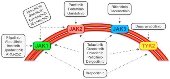 - McLornan, D.P.; Pope, J.E.; Gotlib, J.; Harrison, C.N. Current and Future Status of JAK Inhibitors. Lancet 2021, 398, 803–816. [Google Scholar] [CrossRef] [PubMed]
