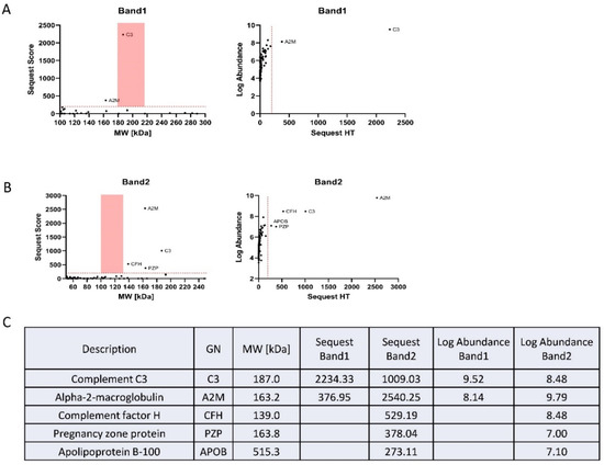 3.3. Complement C3 and Alpha-2-Macroglobulin Are Major Proteins Identified in the Top Two Bands of SDMA Detection