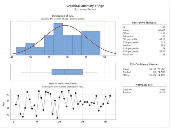 | Variable | Age Group | N | N * | Mean | SE Mean | StDev | Minimum | Q1 | Median | Q3 | Maximum |