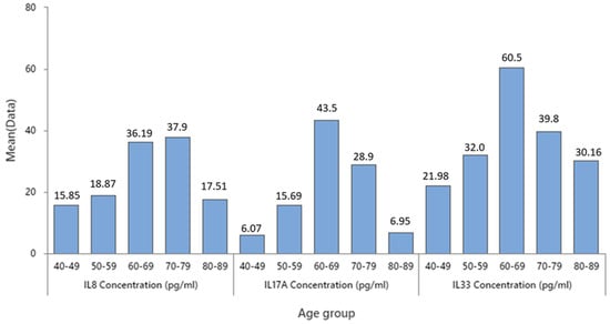 | IL17A Concentration (pg/mL) | 40–49 | 3 | 0 | 6.073 | 0.189 | 0.327 | 5.801 | 5.801 | 5.982 | 6.436 | 6.436 |