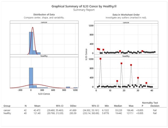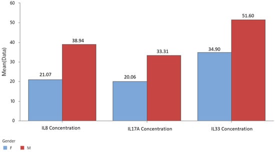 | IL33 Concentration (pg/mL) | F | 23 | 0 | 34.90 | 8.17 | 39.17 | 6.13 | 10.17 | 23.01 | 34.68 | 186.48 |