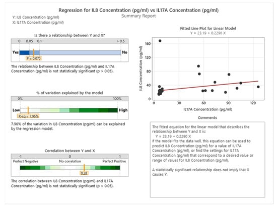 | IL8 Concentration (pg/mL) | F | 23 | 0 | 21.07 | 1.68 | 8.07 | 13.78 | 16.08 | 17.22 | 24.37 | 46.40 |