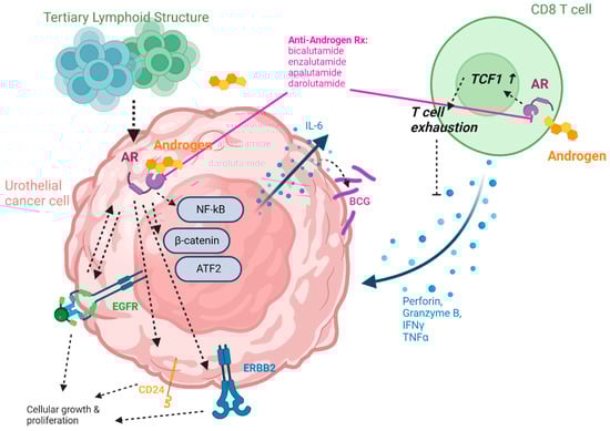 A visual synthesis of potential tumor-intrinsic and immune-mediated effects of androgen receptor signaling in bladder cancer is illustrated in Figure 2.
