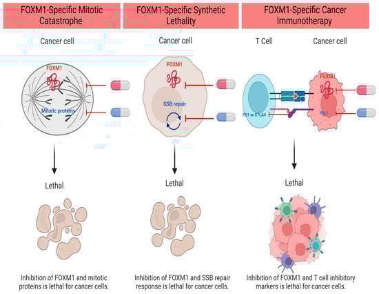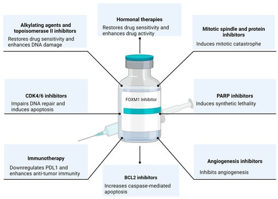 The Rational of FOXM1 Combination Therapies. Created with BioRender.com (accessed on 11 January 2024).