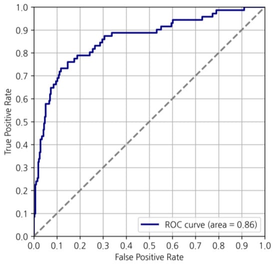 Our study identified that the accuracy of our predictive model was 86.8% for the ensemble model, 84.8% for the MMP model, and 87.9% for the ODX model (Table 3). In the ensemble cohort, the sensitivity, specificity, and precision for predicting the low-risk category were 0.91, 0.66, and 0.92, respectively (Figure 3 and Table 4). The sensitivity, specificity, and precision of the MMP prediction model were 0.86, 0.83, and 0.92. Those of the ODX prediction model were 0.93, 0.58, and 0.92, respectively (Table 4). Additionally, the AUC of the ROC curve was 0.86 in the ensemble cohort (Figure 4).