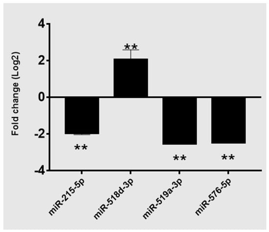 | miR-519a-3p | Down | −2.51094 | 0.043237 | 0.010099 |