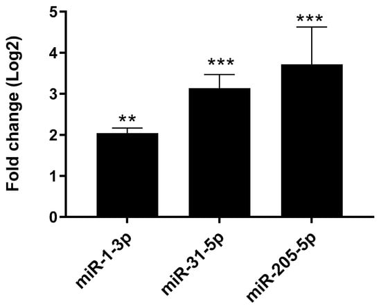 | miRNA | Regulation | Fold Change (Log2) | S.D. | p-Value |
