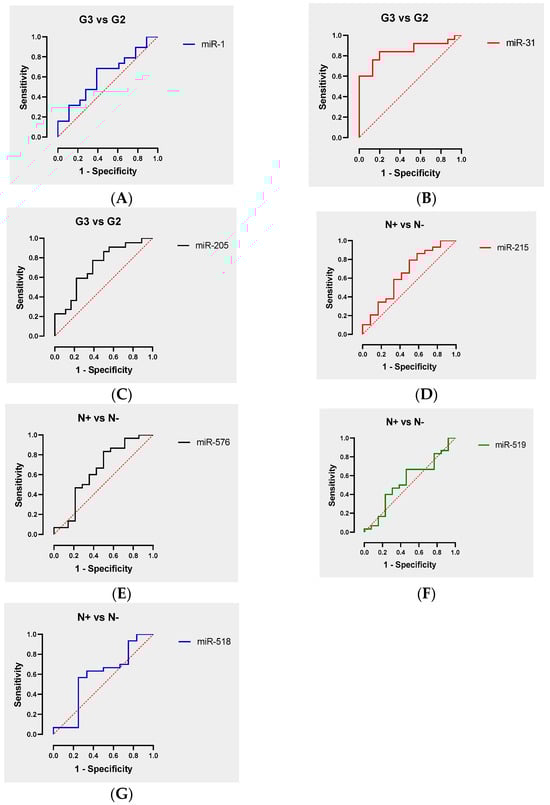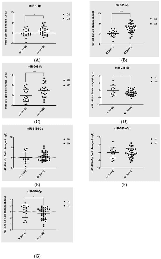 3.4. Correlation Study between miRNA Expression Levels and PDAC Patients’ Survival and Clinico-Pathological Features