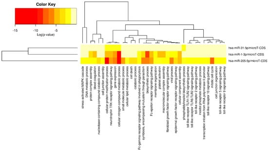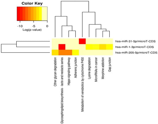 - Vlachos, I.S.; Zagganas, K.; Paraskevopoulou, M.D.; Georgakilas, G.; Karagkouni, D.; Vergoulis, T.; Dalamagas, T.; Hatzigeorgiou, A.G. DIANA-miRPath v3.0: Deciphering microRNA Function with Experimental Support. Nucleic Acids Res. 2015, 43, W460–W466. [Google Scholar] [CrossRef]