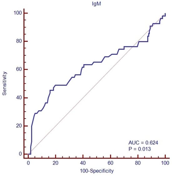 ROC analysis of baseline immunoglobulin (IgM class) amounts to predict treatment failure.