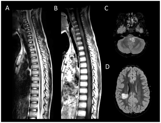 - Cacciaguerra, L.; Sechi, E.; Rocca, M.A.; Filippi, M.; Pittock, S.J.; Flanagan, E.P. Neuroimaging Features in Inflammatory Myelopathies: A Review. Front. Neurol. 2022, 13, 993645. [Google Scholar] [CrossRef]