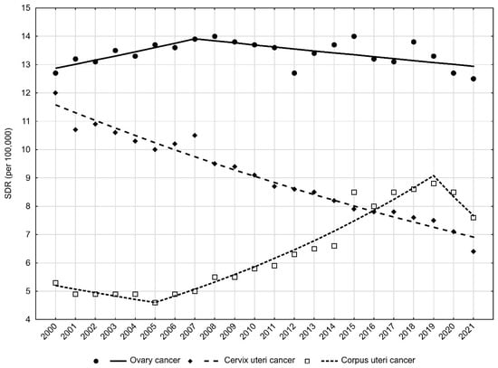 Trends in Mortality Due to Malignant Neoplasms of Female Genital Organs in Poland in the Period 2000–2021—A Population-Based Study
