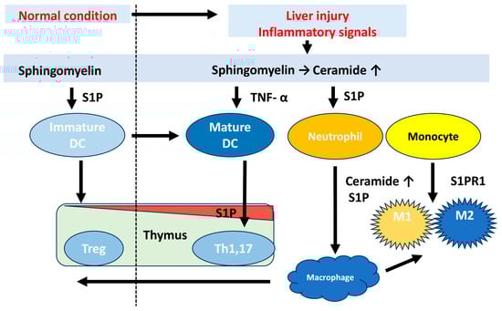 - Sun, H.; Sun, S.; Chen, G.; Xie, H.; Yu, S.; Lin, X.; Qian, J.; Mao, C.; Peng, H.; Chen, H.; et al. Ceramides and sphingosine-1-phosphate mediate the distinct effects of M1/M2-macrophage infusion on liver recovery after hepatectomy. Cell Death Dis. 2021, 12, 324. [Google Scholar] [CrossRef] [PubMed]
