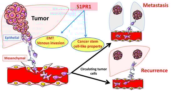 S1PR1 expression via EMT-induced vascular invasion and increased cancer stem cell properties in HCC metastasis and recurrence. S1PR1 overexpression, via EMT-induced vascular invasion and enhanced cancer stem cell properties, establishes a metastatic niche and increases the capacity for hematogenous metastasis as well as recurrence.