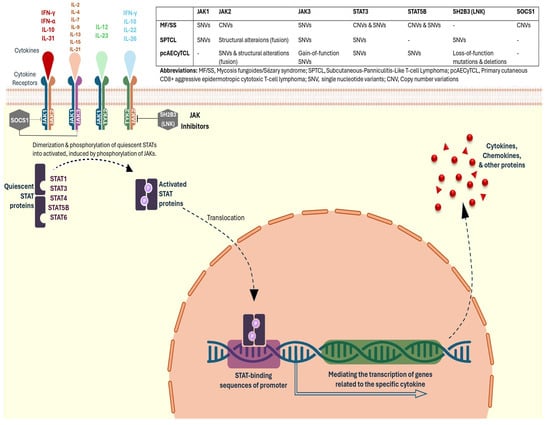 Considering that the JAK–STAT signaling cascade plays a major role in CTCL pathogenesis and may therefore be a promising target for CTCL treatment, the evaluation of different biomarkers and genes and their targeting would be useful for improving CTCL treatment options [,,].