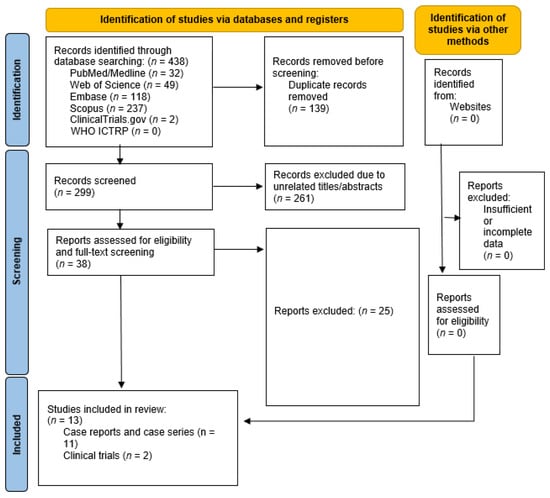 The search strategy involved querying the Web of science, Medline, Embase, Scopus, ClinicalTrials.gov, and WHO ICTRP databases using keywords related to JAK inhibitors, cutaneous T-cell lymphoma, and mycosis fungoides. The search was conducted on 3 December 2023 and included all records up to that date. A manual search was also performed in gray literature (Figure 2).