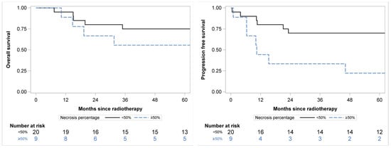 | Necrosis Percentage <50% (n = 20) | Necrosis Percentage ≥50% (n = 9) | p-Value | |
