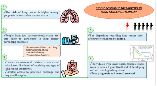 A summary of how socioeconomic disparities affect lung cancer outcomes is presented in Figure 2.