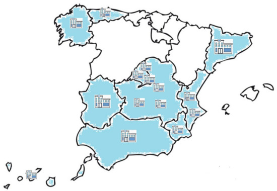 A prospective study, incorporating a cross-sectional analysis at a specific time point, was conducted in 15 hospitals across Spain. The research took place from February 2020 to September 2023, engaging multiple medical oncology services within these hospitals (refer to Figure 1 and Appendix A, Table A1). The objective was to collect data from advanced cancer patients who were not eligible for curative treatment. Patient selection took place during their initial visit to the medical oncologist, where they received information about their diagnosis, disease stage, and the systemic antineoplastic treatments available. To be eligible, participants had to be at least 18 years old, have a histopathological diagnosis of advanced cancer, and not be candidates for curative interventions. Several exclusion criteria were applied, including physical status, age, or comorbidity that could interfere with antineoplastic treatment, prior treatment for a different advanced cancer in the last two years, and any pre-existing condition that could hinder participation. Patients with cognitive impairment or severe general deterioration were likewise excluded. Ethical approval was obtained from the Ethical Review Committee of each participating institution, and this study was approved by the Spanish Agency of Medicines and Medical Devices (AEMPS) with identification code ES14042015. All participants provided informed consent, and data collection involved questionnaires, interviews, and the extraction of clinical information from medical records. The process was standardized across all participating centers, and patient data were collected from their respective institutions. Participation was voluntary and anonymous. Participants completed the written questionnaires at home and returned them at their next scheduled appointment. Medical oncologists used a web platform (www.neoetic.es) to update and collect data.
