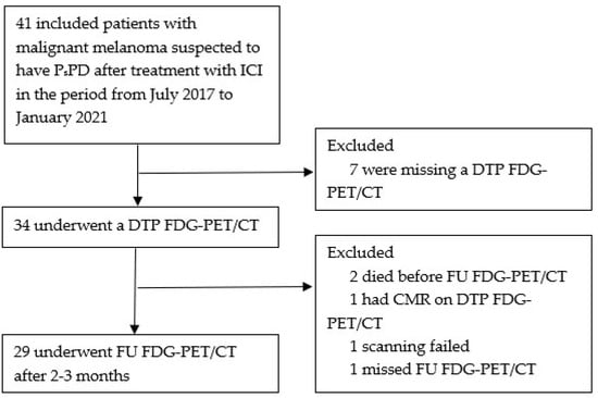 APA StyleHomburg, S., Christensen, C. B., Pedersen, M., Sørensen, S. G., Donia, M., Svane, I. M., Hendel, H. W., & Ellebaek, E. (2024). Prospective Assessment of Fluorine-18-Fluorodeoxyglucose-Positron Emission Tomography/Computed Tomography (FDG-PET/CT) for Early Identification of Checkpoint-Inhibitor-Induced Pseudoprogression. Cancers, 16(5), 964. https://doi.org/10.3390/cancers16050964